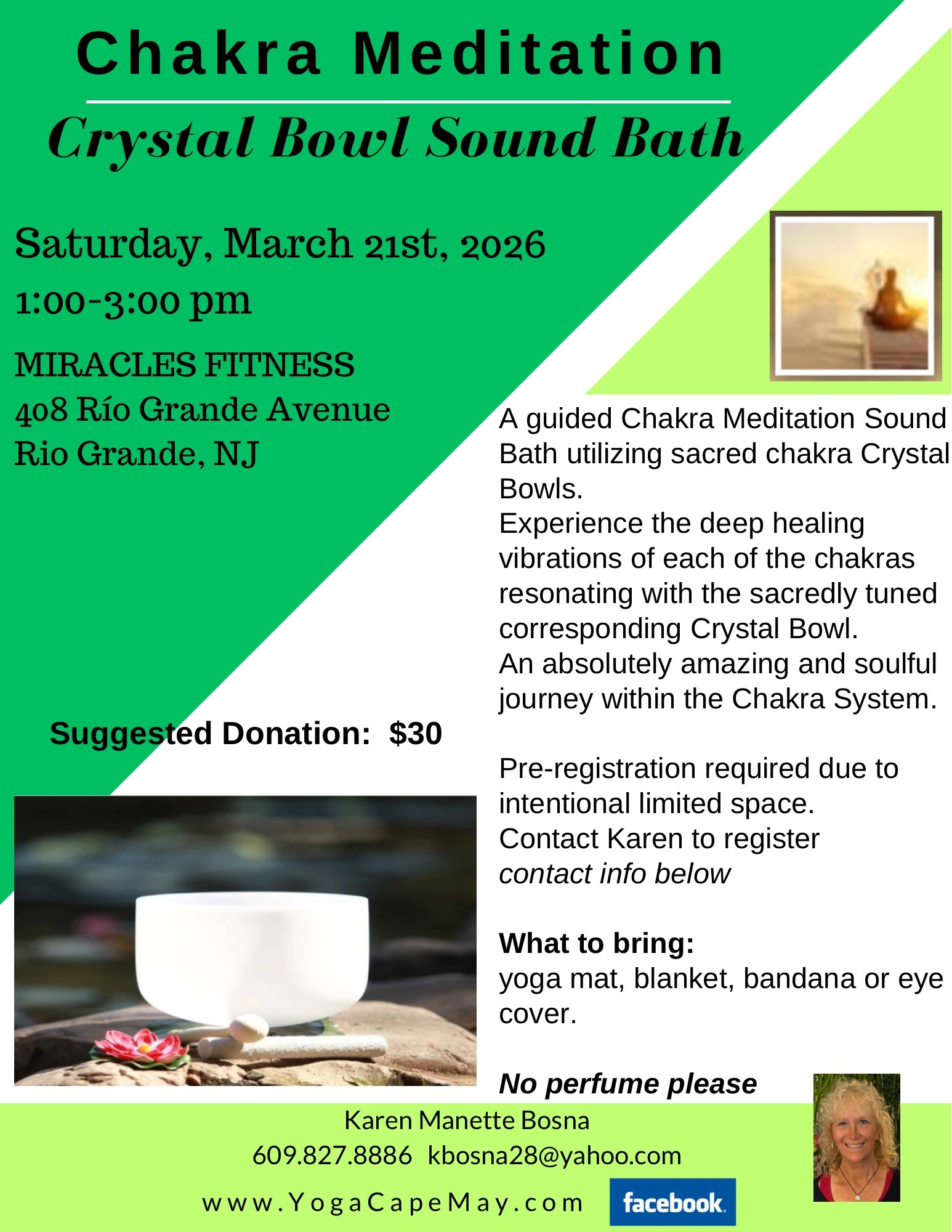 Karen is now offering "PRENATAL" AND "MOMMY AND ME YOGA" Sessions! Call 609-827-8886 for an appointment.